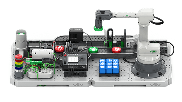 Con la innovadora celda de trabajo VEX CTE, diseñada para la educación técnica y profesional, los estudiantes adquieren experiencia práctica en el diseño y la programación de una celda de trabajo realista con un brazo robótico, transportadores y sistemas neumáticos. Enseñe robótica industrial con conceptos de fabricación de la vida real, como manipulación de materiales y optimización del diseño.
